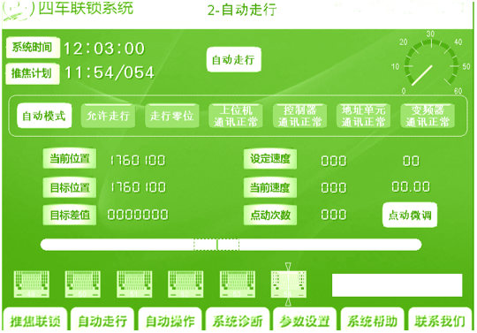 根據(jù)生產(chǎn)工藝流程,自動確定行走的目標(biāo)位置。根據(jù)距目標(biāo)位置的遠(yuǎn)近,自動控制機(jī)車的速度,在自動走行中到達(dá)目標(biāo)位置時自動停止、自動對位。